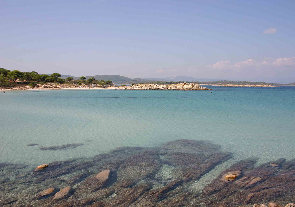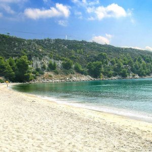 Sand, pebbles, Not equipped. It is a sandy and pebble beach with crystal clear waters located near the town of Porto Carras. It is one of the quieter beaches of Chalkidiki, ideal for those seeking relaxation. If you are a lover of adventures, visit the isolated beaches of the Gerochristo Islands. Be sure to bring all the necessary provisions in terms of food and drink.